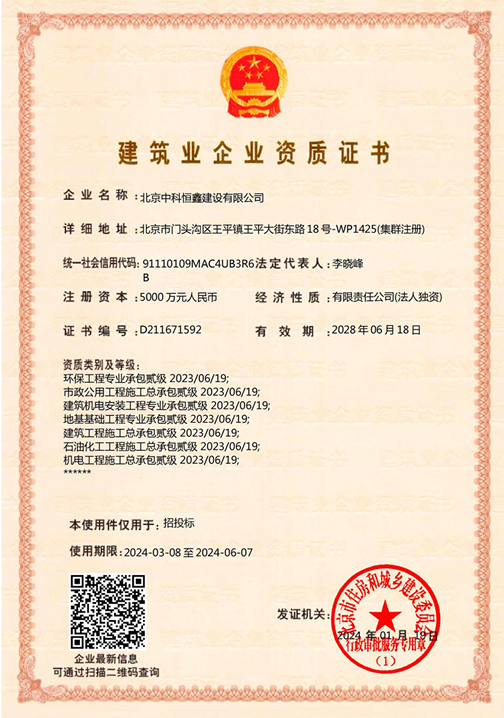 北京中科恒鑫建設(shè)有限公司資質(zhì)