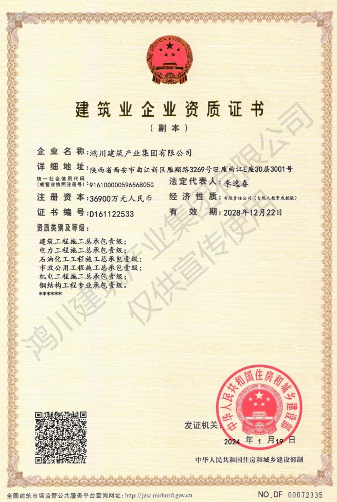 鴻川建筑產(chǎn)業(yè)集團有限公司資質(zhì)范圍及等級: